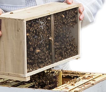Si vous commandez vos essaims nus avec reines, elles sont livrées dans des cagettes d’introduction standard Nicot. Une boîte contenant une réserve alimentaire de sirop de sucre à 50 % est placée au milieu de la cage. Quelques petits trous au fond de la boîte permettent aux abeilles de prélever le sirop. Si vous commandez plusieurs essaims nus, ils seront espacés d’environ 10 centimètres afin de les protéger de l’entassement et de la surchauffe pendant le transport.